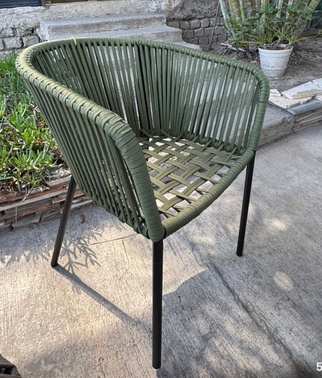 Silla elaborada con cedula de acero y terminada con pintura electroestática horneada. Tejida con Multifilamento de polipropileno especial para exteriores techados e interiores, su asiento tipo diamante la hace la más versátil ya que puede estar con o sin cojines.